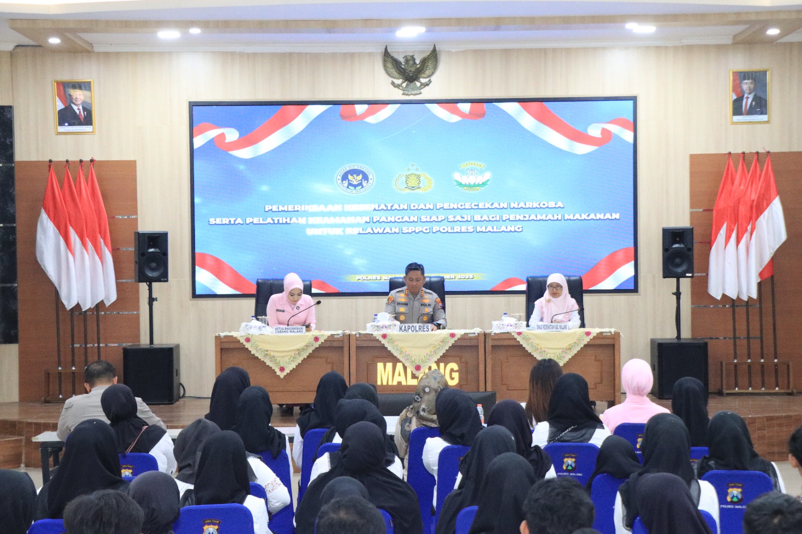 MALANG – Polres Malang menggelar kegiatan pemeriksaan kesehatan, tes narkoba, dan pelatihan keamanan pangan siap saji bagi relawan Satuan Pelayanan 9 Gizi (SPPG) Polri, Rabu (5/11/2025).